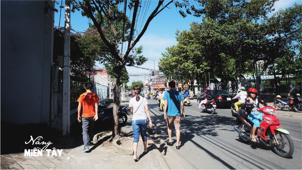 Nắng gió miền Tây chan hòa lắm, nằm cuộn mình trong chăn ngắm nắng buông ngoài cửa sổ mà thấy khe khẽ nắng ghé chạm nụ cười, không cần hẹn đồng hồ, không cần lo âu về công việc, quả là những ngày tươi đẹp đến ngọt ngào! Sáng vươn mình xuống dưới sảnh, gió chan hòa qua tóc, qua ánh mắt long lanh nhìn từng tán lá cây xanh rợp trời, cùng nhau vui vẻ dạo phố đi kiếm quán ăn, lòng vui như đang nhảy múa với nắng vàng giòn vậy. Từng con phố, từng quán xá vẫn mang một sắc màu đặc trưng của miền Tây, sắc màu của biển báo, hương vị của mùi khói, nét đẹp của con người hòa chung vào cùng một nhịp điệu, sao thấy lòng ngân nga mân mê từng nhịp phách đến thế!!
