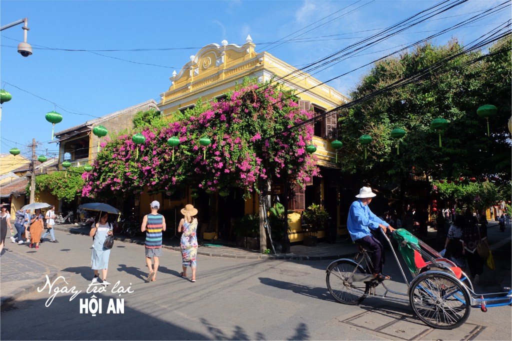 Điểm khởi đầu là Hội An xinh đẹp, nhẹ nhàng và thanh lịch. Mình ở tại Thanh Vân 1 – chỗ đợt trước cũng ghé qua, ngay đầu ngã tư Trần Hưng Đạo và Hai Bà Trưng, đầu ngõ dẫn tới phố cổ. Vừa đủ để đi dạo loanh quanh khu phố và không gia rìa. Hội An đón mình là những ngày nắng chói chang, nắng buông lưng chừng xuống khu phố, hàng quán cũng mở muộn, Hội An vẫn vậy, bắt đầu tấp nập từ đầu giờ chiều trở đi, phố trở nên lung linh, và dòng người nhẹ nhàng tản bộ. Giờ đây khách du lịch nhiều lắm nên chi phí cũng đắt đỏ hơn nhiều rồi. Ở Hội An, có lẽ sẽ thích tản bộ, ghé quán cafe và dành toàn bộ thời gian thư giãn tại đó, những khoảng lặng, rất lặng cho cuộc sống hàng ngày, không quá xô bồ, cũng chẳng cần nghĩ phải đi đâu làm gì, chỉ cần ngồi và ngẫm, và tận hưởng thôi…..