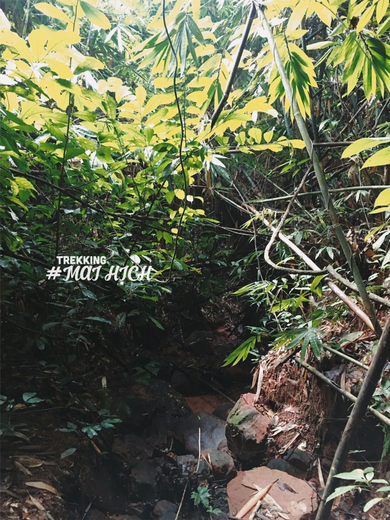 Câu chuyện cũng không có gì đáng nói nếu vượt qua 30′ con đường mòn có hàng tre 2 bên cũng khá dễ đi, thêm 30′ nữa đúng chất leo trèo, bò trườn và lần mò theo cảm tính….Quả thật mình không mệt và cũng không có ngại truyện leo trèo, nhưng mình cần 1 người có bản lĩnh đi rừng hơn, Châu hăng máu quá mà cứ lấn xông tới, cho tới khi quay lại thì suýt lạc đường không thấy điểm ra, một phen hú vía cho con tim rớt vài nhịp, thật sự rất may mới chị lạc có xíu và đã tìm được đường trở về…Ầy gu, khu rừng bỗng dưng lại khiến mình thấy sợ.