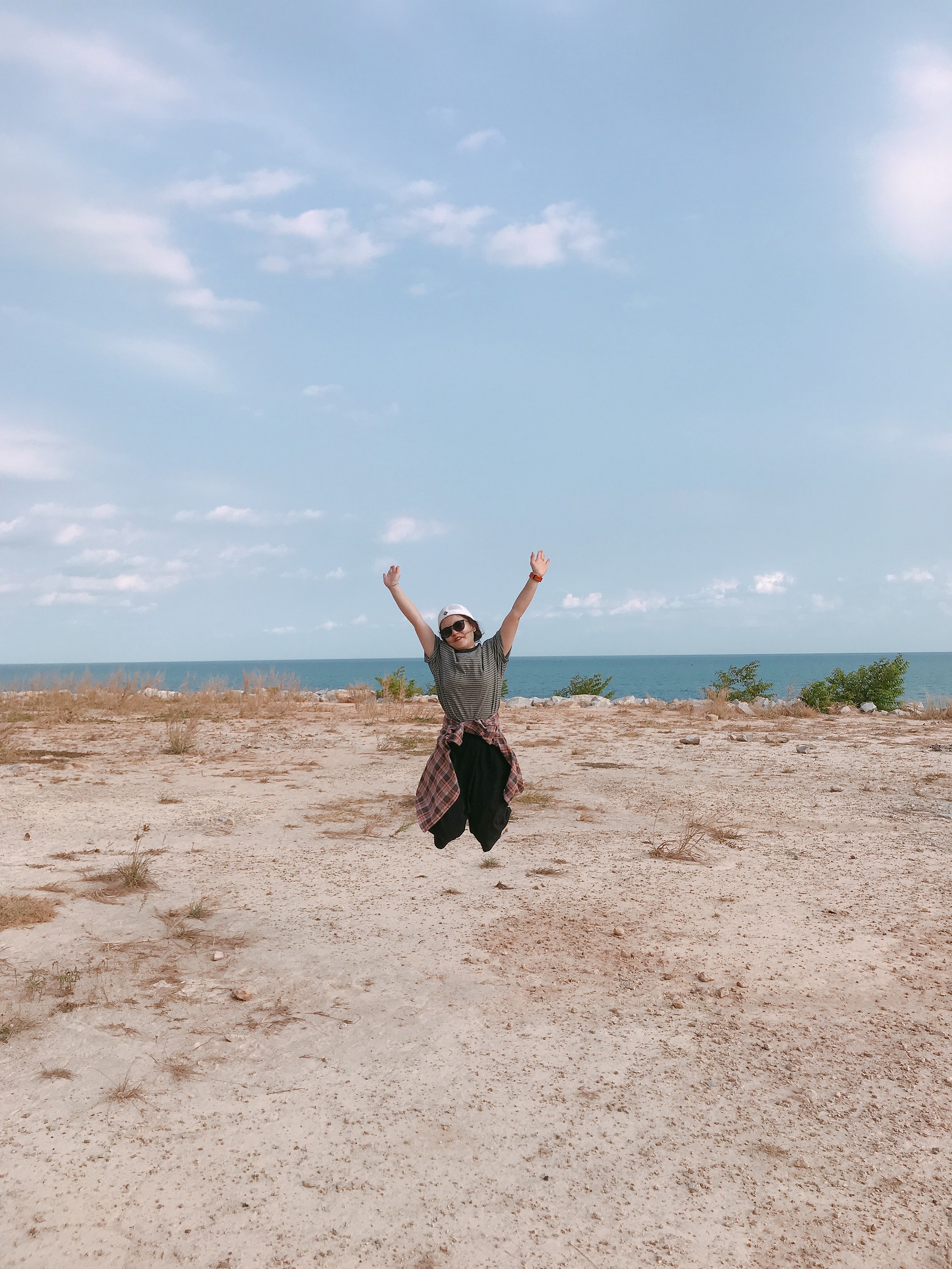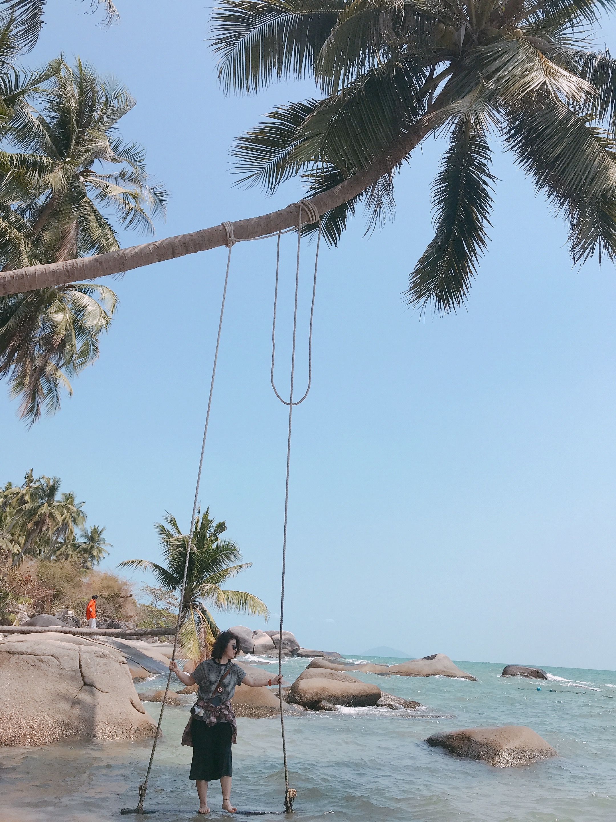 Ngày 02: Vĩnh Long – An Giang (Châu Đốc) – Kiên Giang (Hà Tiên, Rạch Giá): trọn vẹn 1 ngày trên xe, 7 người bạn kề ca vui hát trên xe qua các điểm. Đôi lúc ê ê cái mông thì lại dừng tạm cafe võng rít nước mía, gió sông thổi về, mát rượi một tâm hồn. Tầm chiều ghé đến Hà Tiên, cát biển Hà Tiên đen do là ảnh hưởng bụi núi lửa gì đó, ấy vậy mà các nhà đầu tư mua cát trắng đổ lên, vậy nên nước không còn trong như trước nữa. Nhưng khung cảnh biển nhẹ nhàng, chạm lấy tâm hồn mình như đứa con lâu ngày thấy mẹ hiền về, mình ngâm chân dưới nước biển, mát lạnh…Muốn tắm quá, nhưng nghĩ mai ra đảo rồi nên đành ngắm nhìn hơn.