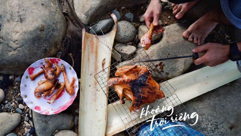 nếu bỗng thấy đói bụng quá, thì có thể phi xe ra chợ, mua con gà và chút ít gia vị, rau củ để ra bờ suối nướng, tất tần tật không quá 300k mà được bữa no nê đúng chất bụi.
