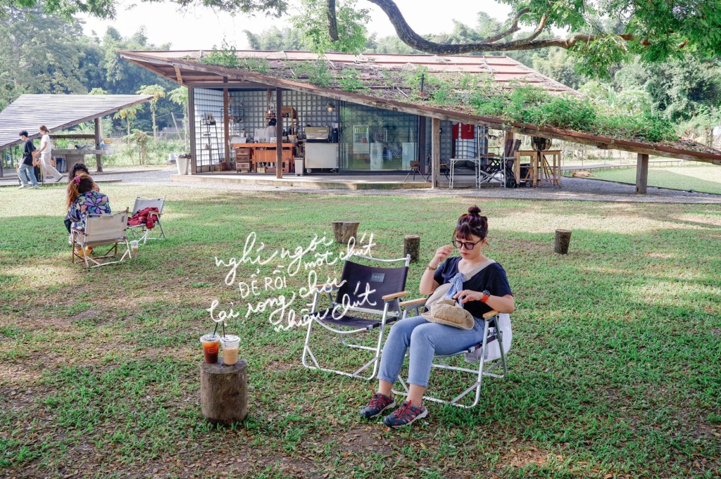Cà phê 123 Glamp – quán cà phê theo dạng camping ở phía bắc của thành phố, cách khoảng 13km. Nếu so với Đà Lạt thì không bằng được, nhưng được cái họ biết làm dịch vụ và truyền thông nên giới trẻ cũng mò ra đây nhiều, đồ ở đây cũng hơi mắc và chỉ được 1 khoảng sân cho ~10 nhóm ngồi, tự lấy ghế và tự lấy đồ uống, xong xuôi cũng tự dọn nhé….cũng khá là tây tây chút.