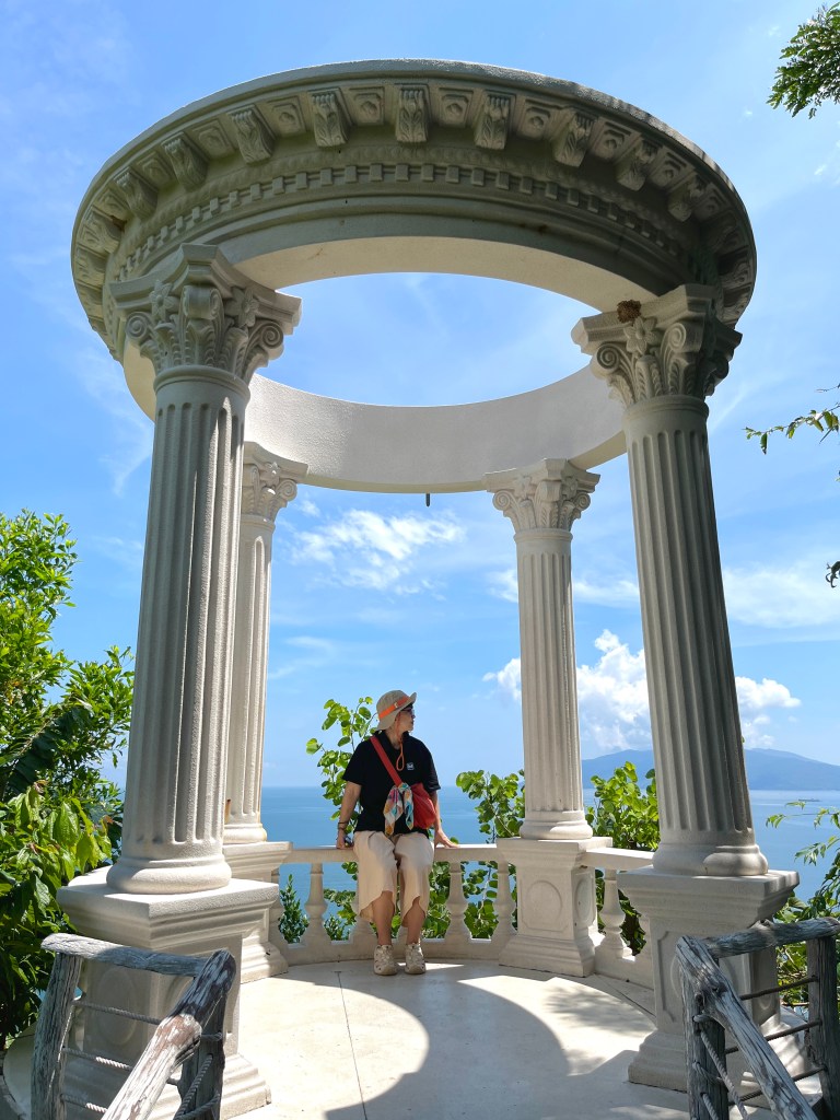 Trên đường trở về Đà Nẵng, ko qua hầm chui mà lên thẳng đèo, tụi mình có ghé Hải Vân Xanh, quán cà phê treo leo trên ngọn núi nhìn bao quát view biển tp ĐN. Quán không phải quá suất xắc về đồ uống hay decor, chỉ đơn giản là có vị trí và có nhiều góc đẹp để ngắm biển, còn đâu thì decor hơi sến 1 chút :))) à vé vào cửa + ly nước đồng giá là 75k/ người. Leo dốc cũng khá nhiều, nên đến đây, mn hạn chế đi giày cao gót nhé, và có thể đi xe máy vào sâu hơn cũng đc.