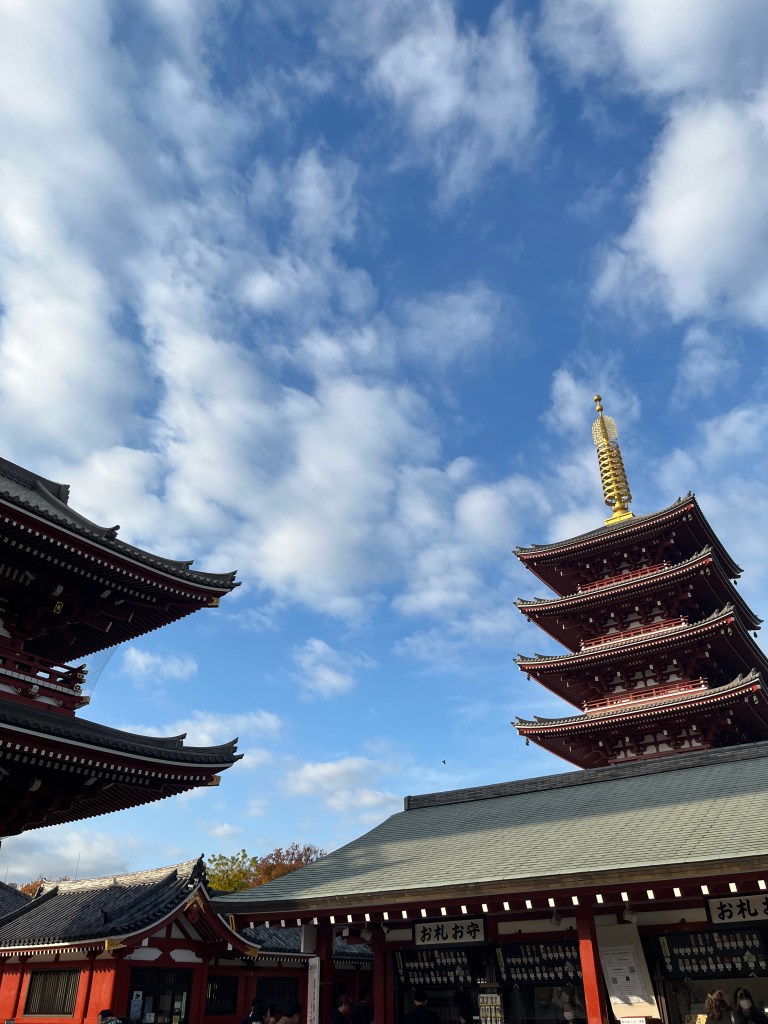 vì chuyến này đến làm việc và họp hành, nên mình không có du hí được nhiều, chỉ có trống nửa buổi cuối để thăm chùa Sensoji và Imperial Palace. À trước đó mình có ghé ngôi chùa gần ngay chỗ làm, Tokyo Daijing gu Shrine trên đường đi làm. Mình cũng đã đắn đo nhiều để chọn điểm đi, và đây xứng đáng là 2 điểm để ghé vào ban ngày, do mình ko thích mua sắm hay lui tới mấy con phố nhộn nhịp như Shibuya. Đến đây, mình được người bản địa hướng dẫn, trước khi vô chùa cần phải rửa tay để thanh tẩy hết những điều xấu xa trong cơ thể, r tiến tới điện thờ, tung đồng xu, cúi đầu 2 lần, vỗ tay ra tiếng 2 lần, và cúi 1 lần để cầu bình an và sức khoẻ.